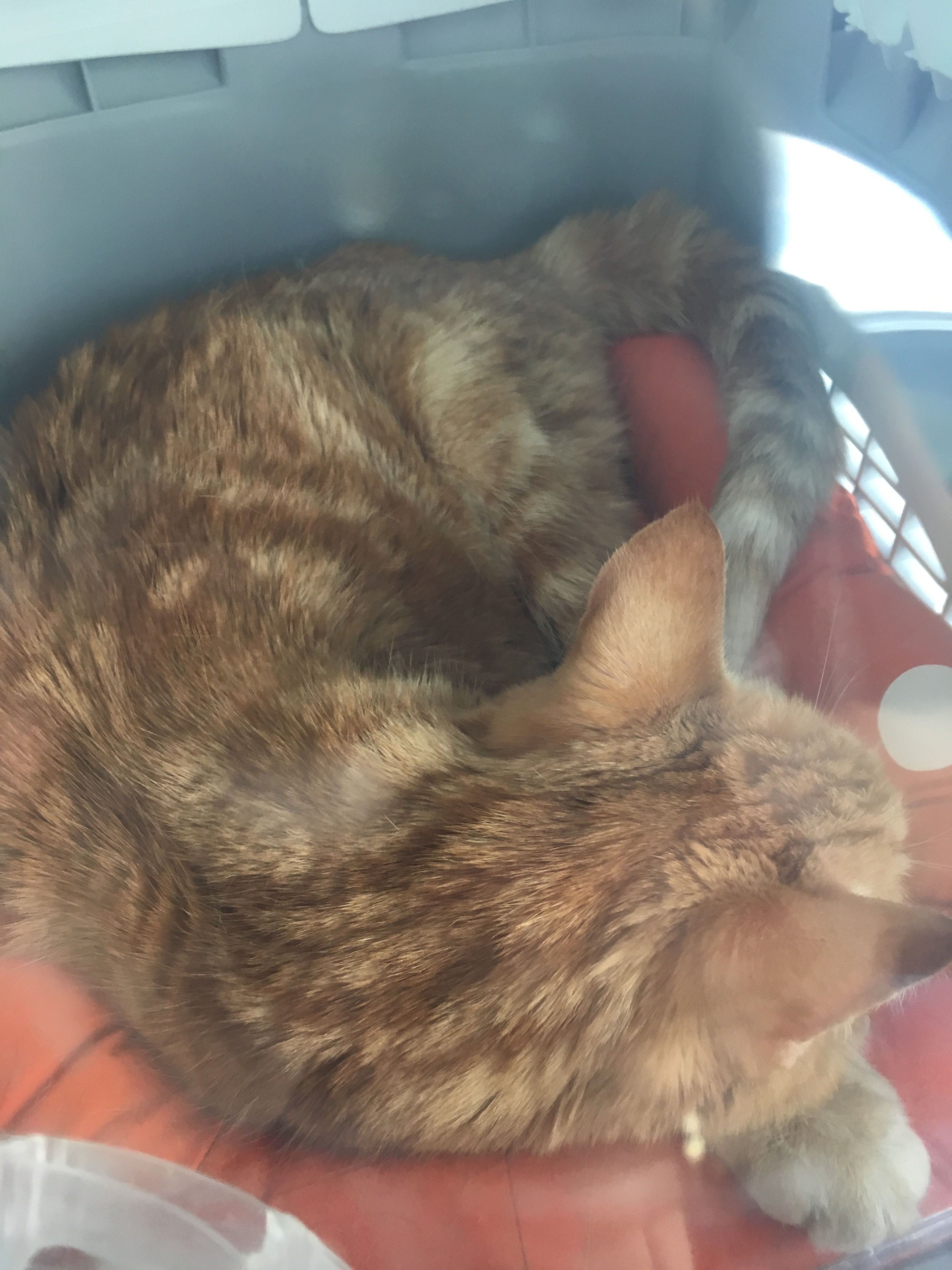 Mummy got up early the next day and spent some time with Mia to try to get her to eat, drink and hopefully perk up a bit but Mia just wasn’t interested, daddy came trough and tried but again nothing, she just hid behind the cat perch. Then the had to reluctantly leave for work. Later on mummy came home and again went straight for ‘the cupboard’ this time though I wasn’t scared for myself but for Mia, I knew it was her that would be going into it. I was right mummy said hello to us all be went to Mia and scooped her up gently, Mia grumbled but didn’t have enough strength to put up,her usual fight. Sadly though as mummy walked down the corridor Mia wee’d (a lot). I was so shocked and I thought Mia would be in trouble as it wasn’t very nice to wee on mummy, I was wrong though, mummy was very calm and spoke gently to Mia stroking her and saying “it’s ok Mimi, never mind, let’s get you better, it’s ok”. She put Mia gently in the carrier, got changed, used her wet clothes and some clots to cover the mess and left. Daddy came in a bit later and seemed to know what was waiting for him and proceeded to clean everything up, he washed our bowls and got everything ready whilst mummy was out. Then daddy’s phone rang, I could hear with my super hearing that it was mummy and she was on her way back. When she arrived back there was no carrier! Where was Mia, what had happened, what was going on? What had I done to Mia? I felt really bad, was it my playing with her that made her ill?