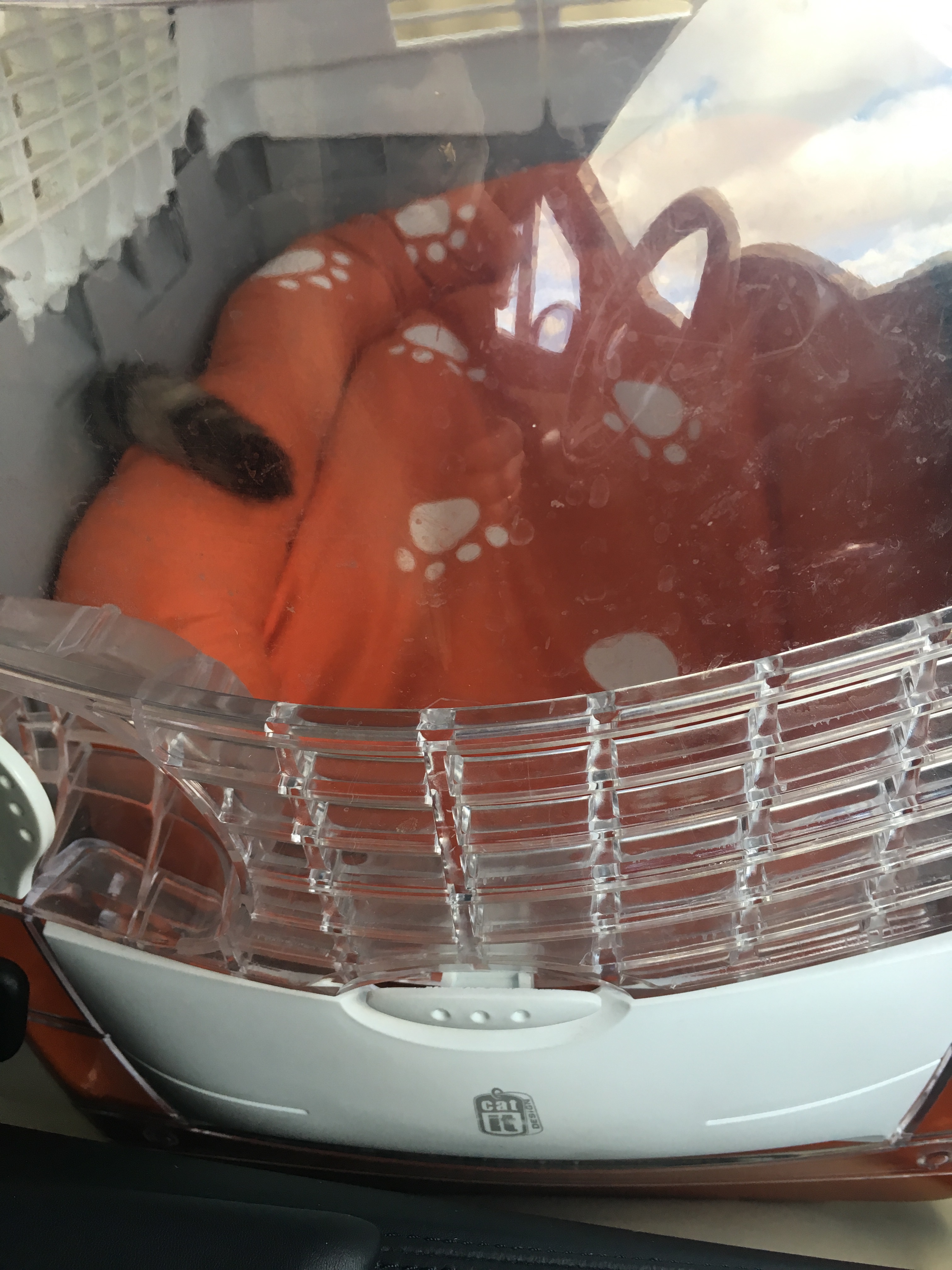 After a while I heard a voice and my cage opened, “Jenny, it’s time to go home” they said, they took the nasty bit out of my leg and put me gently into my carrier. I knew it was mine because it smelt of me, Peppar and Mia as we all share the same one, I was hopeful that I was going home but still frustrated with the thing around my neck. It kept getting stuck on things. Then we were on the move and I could just make mummy’s voice through the carrier and the neck thing. Mummy had come back for me 😻 and so I knew everything would be ok. Mummy had a talk with the vet and then we went home and back to daddy.