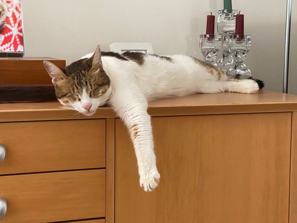 Find yourself a nice cool surface to lie on, mummy and daddy have a big glass dining table that we’re not supposed to go on. Millie keeps getting told off because she’s always walking or sitting on it. “Millie get off the table.” mummy says to her but she either doesn’t learn or, more likely, doesn’t want to learn as she keeps doing it time after time 🙀! I think she likes it because it feels lovely and cool plus there’s a breeze through from the kitchen to the balcony which is nice when it’s so hot. The cool surfaces can be a bit hard and uncomfortable so Mummy and daddy also put out some cool pads on some of our comfy beds so we can be cool and comfortable at the same time. They’re so good that even daddy sits on them sometimes to help keep cool.
