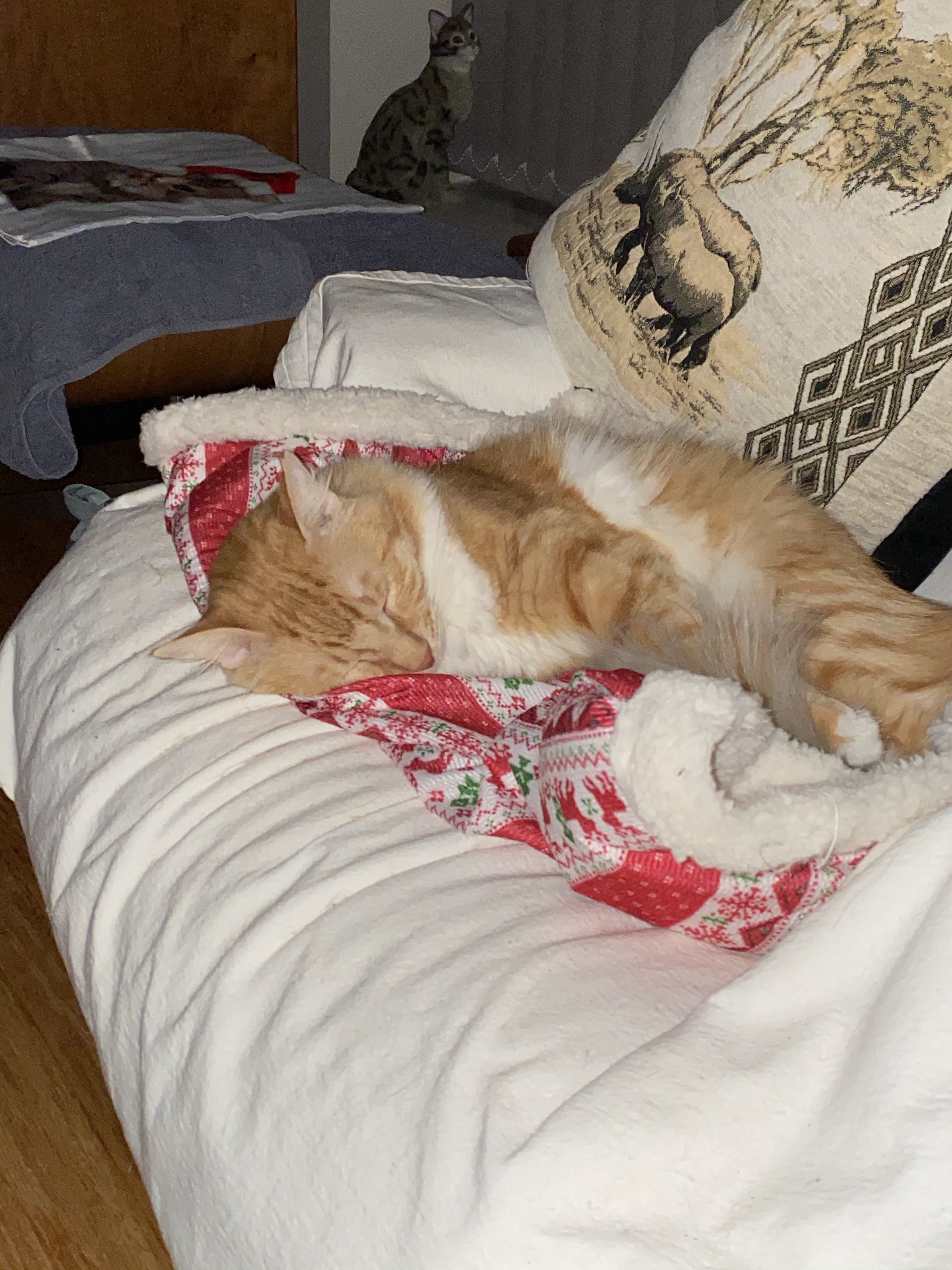 We had such an ameowzing day we were all so spoilt with such lovely gifts 🎁 and after having my usual afternoon walkies with mummy I was exhausted so I snuggled down for a nap on mummy’s lap with Peppar, dreaming of all the designer bandanas and bow ties I’m gonna put in my special box.