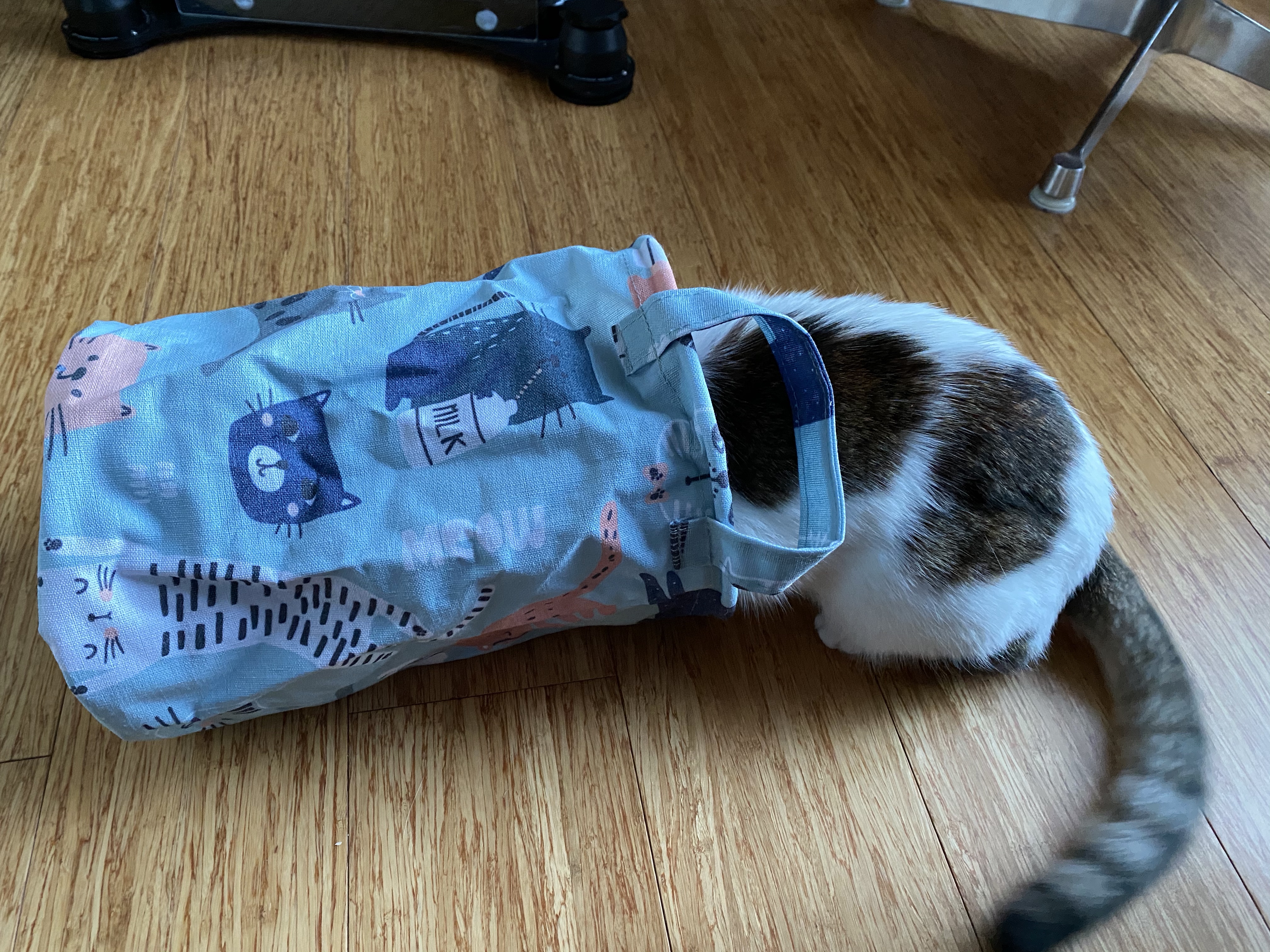 Christmas Day was such fun, I got up early to see if Santa had left me anything under our cat tree, there were lots of presents and I sniffed as many of them as I could reach but even with my sense of smell I couldn’t tell if any of them were for me. I would just have to wait until mummy and daddy get up. It seemed like days and days before they got up coz I was so excited. Finally they woke up and we were all running round them, saying “ Hurry up, hurry up, we wanna open our presents” “ok, hang on just a bit longer and we’ll all open our presents together as a family.” There were lots of presents to help open and we had such fun playing in all the crinkly paper that we all thought that was our present until daddy said “Jenny, this ones for you”. Wow I was on the good list after all and I started to paw at the paper to find out what was inside. With daddy’s help I opened the present and mummy described it to me whilst I sat on the wrapper and had a good sniff. I had got a lovely box with my name on it to keep my bandana’s and bow ties in. What a fashion diva I’m gonna be from now on with such a beautiful box. Millie got a toy bag to keep all her nobbly balls in, Angelin got a Christmas blanket and more of her favourite crinkle wands and Peppar got a new snuggle bed and special bowl to help him eat now he’s got no teeth and we all got some new placemats for our food bowls. We were all so happy, we can of course all share the presents and it turns out Millie really likes the blanket and I inspected the toy bag which Angelin also likes to stick her head in, hopefully I’ll get to share Peppars new snuggle bed like I did the old one (which mummy says is gross and needs a wash) but no-one can share my box, it’s just for me and has my name on it, no one else has any bandanas or bow ties, I feel like such a special and lucky girl.
