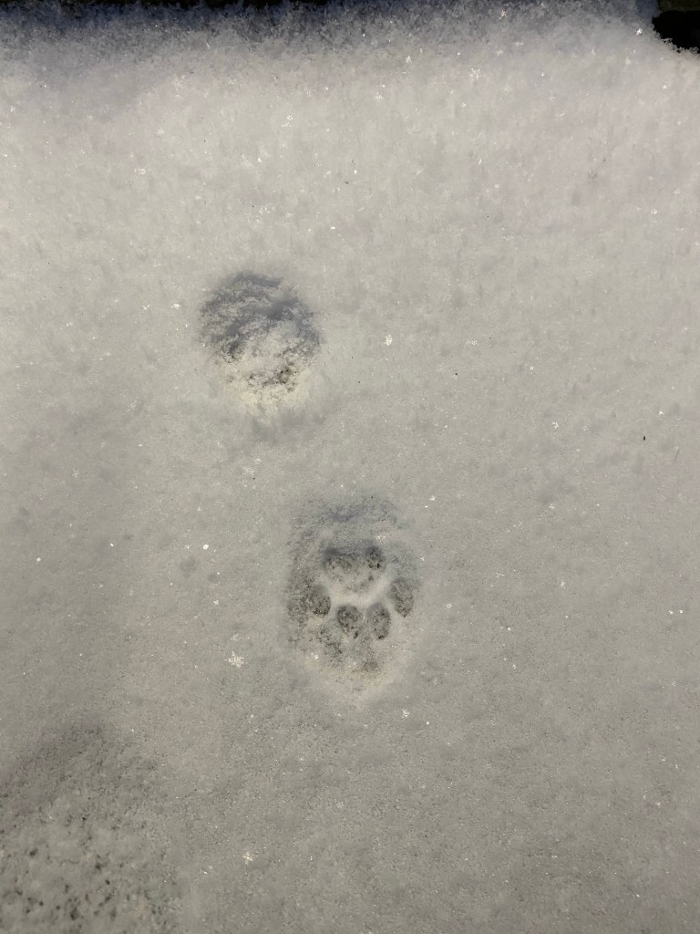 A little while later and my paws are getting very cold and so I meowed to mummy and headed back towards the door back to the warm inside. I had however left lots of my pretty paw prints behind in the snow just so all the little animals know that these are my gardens and that I’d been out making sure everything was in order.