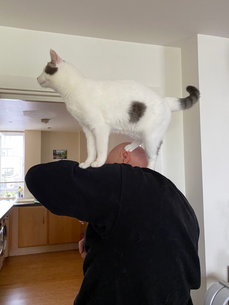Daddy is always there for us no matter what. Whilst mummy and daddy have been working at home and not going out it’s given daddy and I time to bond and develop our relationship. He always sat back and let me and meowmy be best buddies and let me and mummy do everything together. Now though daddy and I play a lot more, I’ve taught him the damp hands game and we play this at least twice a day and I love it. Whenever I hear the tap going I go running to him meowing and he rubs me all over with his wet hands as I run around the flat meowing with joy. Very occasionally I sit on his lap or sometimes when mummy’s not here I sit next to him so we can keep each other company and he can rub my chin.