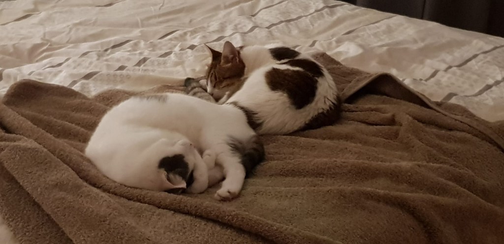 It’s me Jenny back again. As much as we didn’t like being without Millie, Angelin and I don’t really like having her back either, I know that sounds bad but she sounds different, there’s an odd noise when she moves around and her meows aren’t her normal jolly, happy Millie meows. She also smells funny so Angelin and I are just being a bit wary of her. We’re leaving her to be with mummy and daddy and we’ll keep each other occupied and comforted until Millies back to her old self again which paws 🐾 crossed won’t be too long.