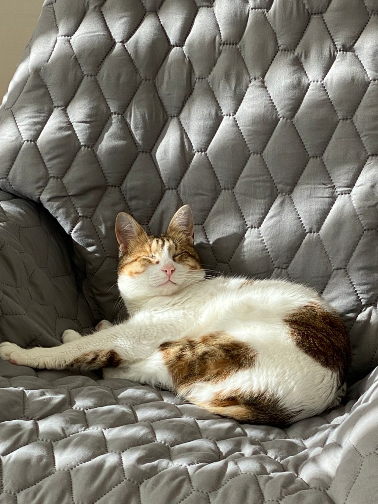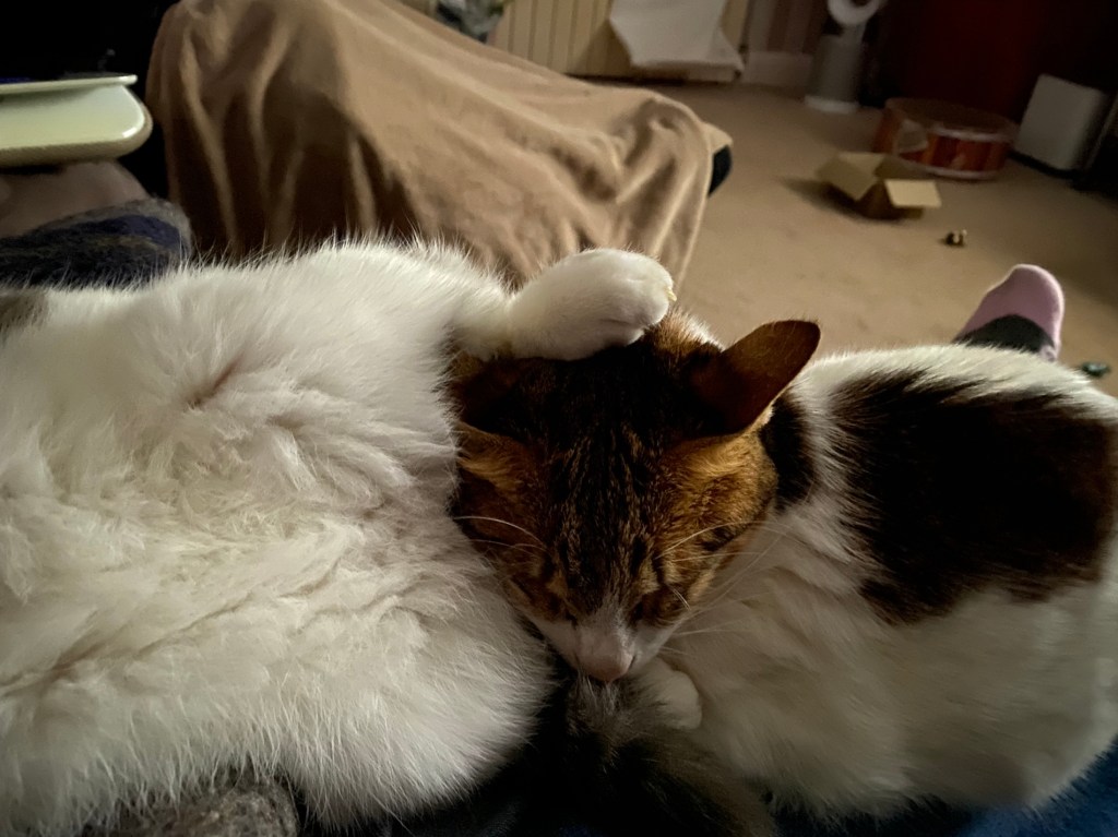 It’s a very complicated and exact science calculating the exact right place to snuggle into at that exact time. Sometimes by the time you’ve done all the calculations to make sure your in just the right place the moment has gone and that spot is no longer the best one anymore. Sometimes it’s just best to go with what you feel, what just feels good at the time, it doesn’t always look comfortable I can assure you, sleeping and snuggling is something that us kitties are very good at. I always know when I’ve got the right spot as it just feels good, really, really good, it feels safe, cosy and warm, like a big soft hug. Let me tell you, having spent my early months on the street back then I didn’t even know what a snuggle spot was let alone that big, warm hug feeling. There really is no other feeling quite like it.