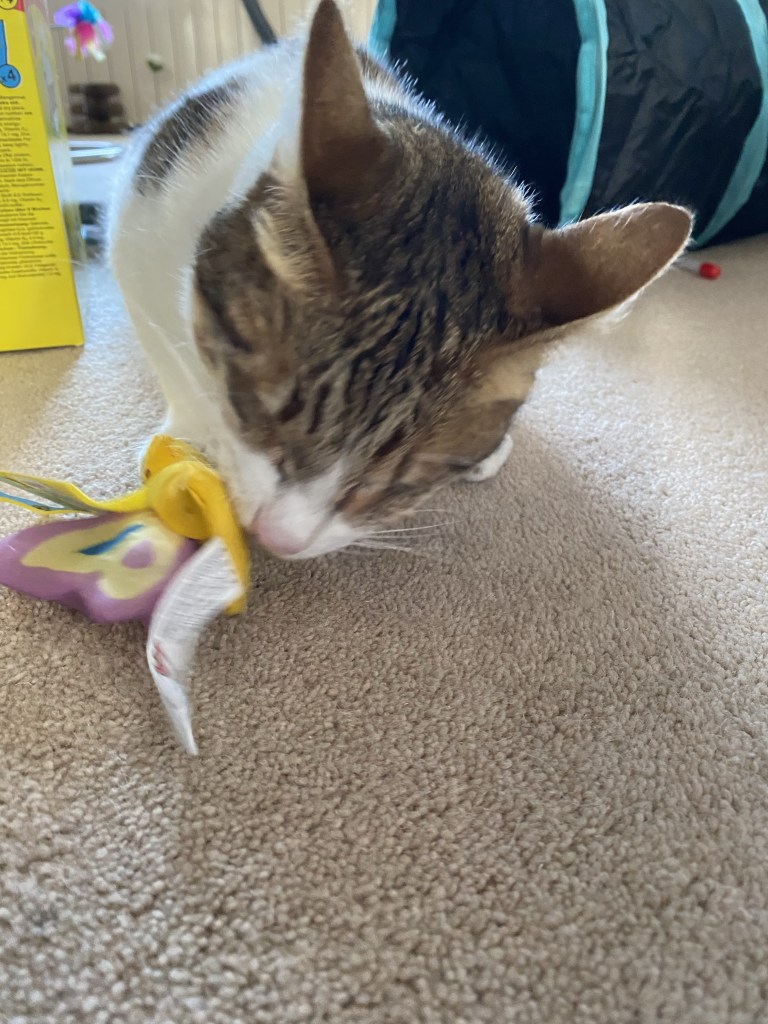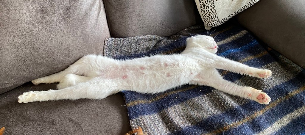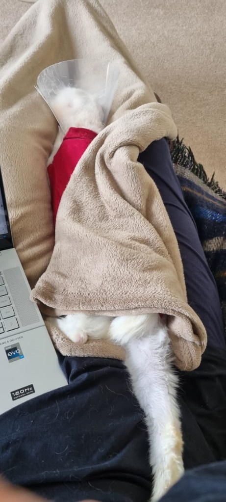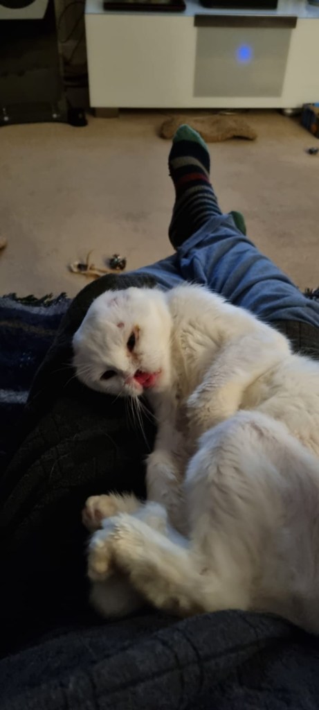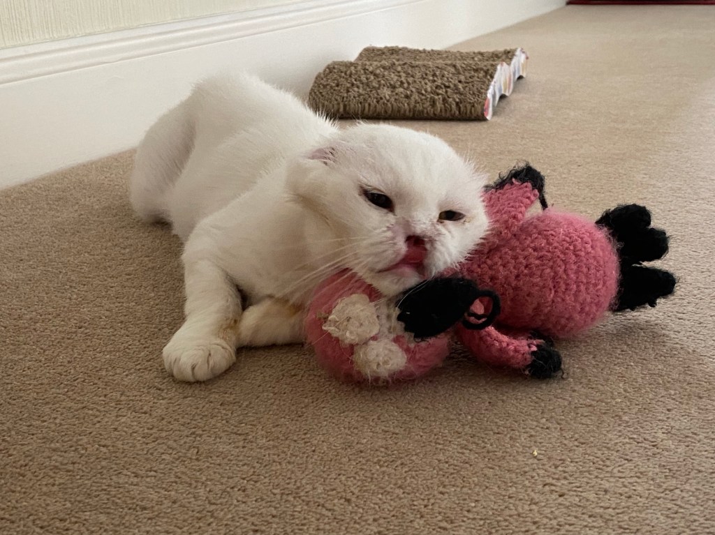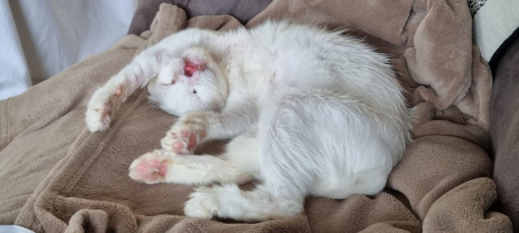 For us three though our hardship finished when we found our furrever home and we’re welcomed into the loving arms of our new furramily but sadly for Precious her troubles just kept on coming despite landing on her paws finding a place with us in our loving home. Her problems didn’t ease when she arrived with us but as you know mummy and daddy have worked hard and built her trust up, taught her how to play and watched her blossom into a chubby, fluffy, bouncy, tigger cat.