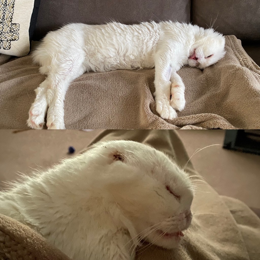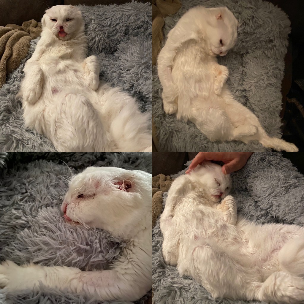 A couple of weeks ago was the toughest day we’ve had yet as a furramily, Lil P had (another) vet visit, it was the visit that mummy and daddy were dreading, the one that confirmed that despite everything they have tried and done for our little sisfur, Precious cancer is back and it’s aggressive. It’s in her ear again for sure but the big shock was that her nose wasn’t blocked and swollen with infection this time so it’s likely the nasties have spread to her lip/nose as well. Mummy and daddy have already done everything they can for her so all they can do now is keep her comfortable with some anti inflammatory medicine.